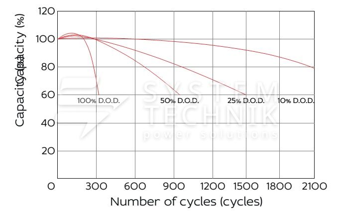- Рекомендуемое напряжение заряда в циклическом режиме для 12В батареи: 13,5В-14,1В при 25ºС;