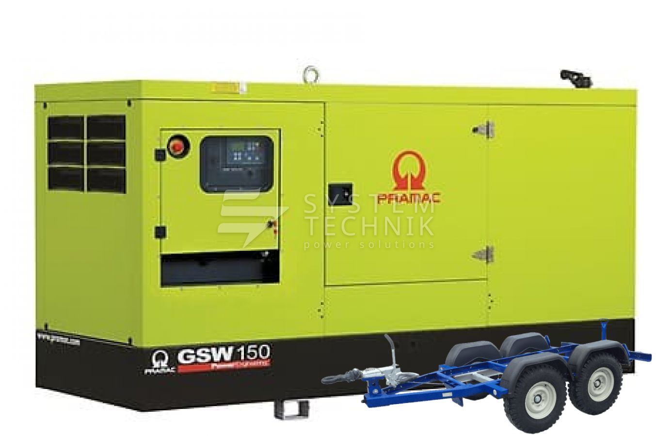 - Дизельный генератор Pramac GSW 150 V 220V В кожухе на прицепе