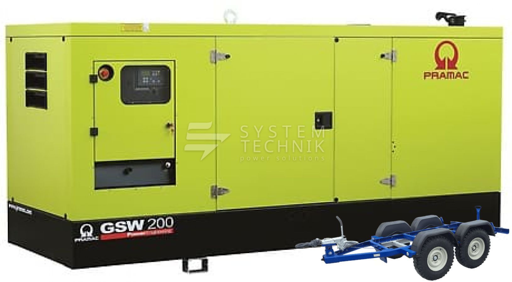 - Дизельный генератор Pramac GSW 200 P 208V В кожухе на прицепе