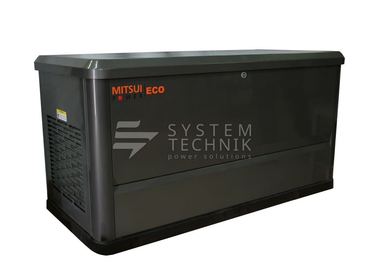 Трехфазная газовая электростанция в шумозащитном кожухе Mitsui Power Eco GM 10000 изготовлена на базе двигателя Mitsui С720 с воздушным охлаждением. Генератор предназначен для организации автономного электроснабжения домов, небольших коммерческих, социальных и бытовых объектов.
